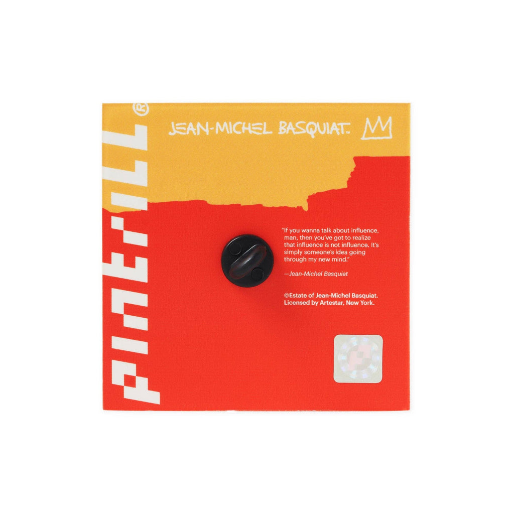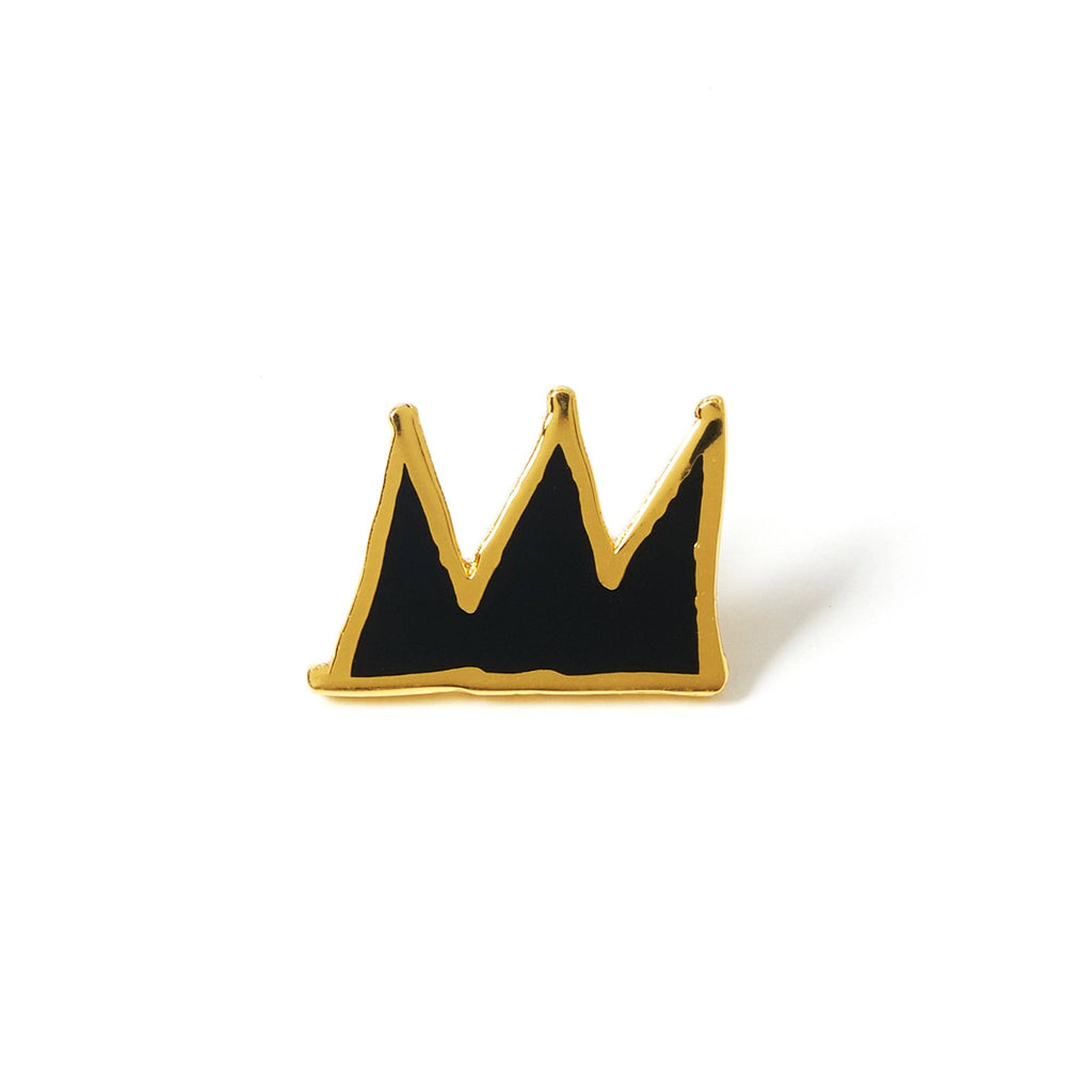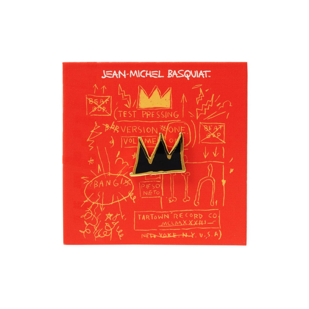 0,75" x 0,75" x 2 mm Broche en laiton plaqué or avec émail dur Embrayage à goupille en caoutchouc noir © Succession Jean-Michel Basquiat. Sous licence Artestar, New York.