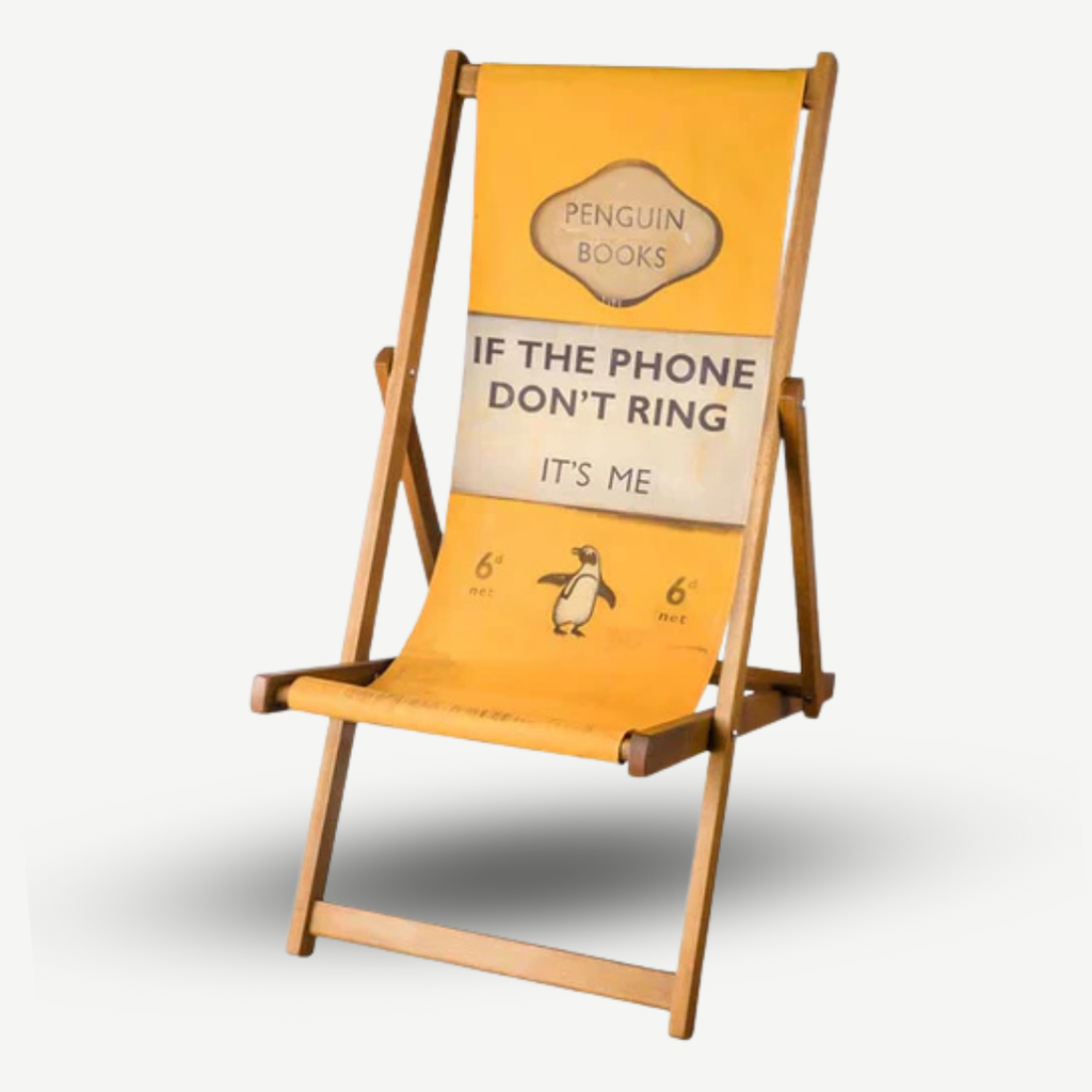 Harland Miller deckchair showing his signature adaptation of Penguin’s instantly recognisable covers. There are several variation of the chair available, each in a limited edition of 50.