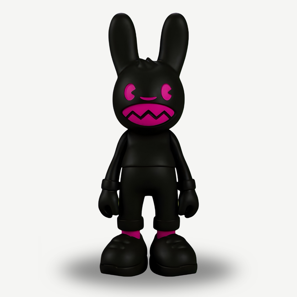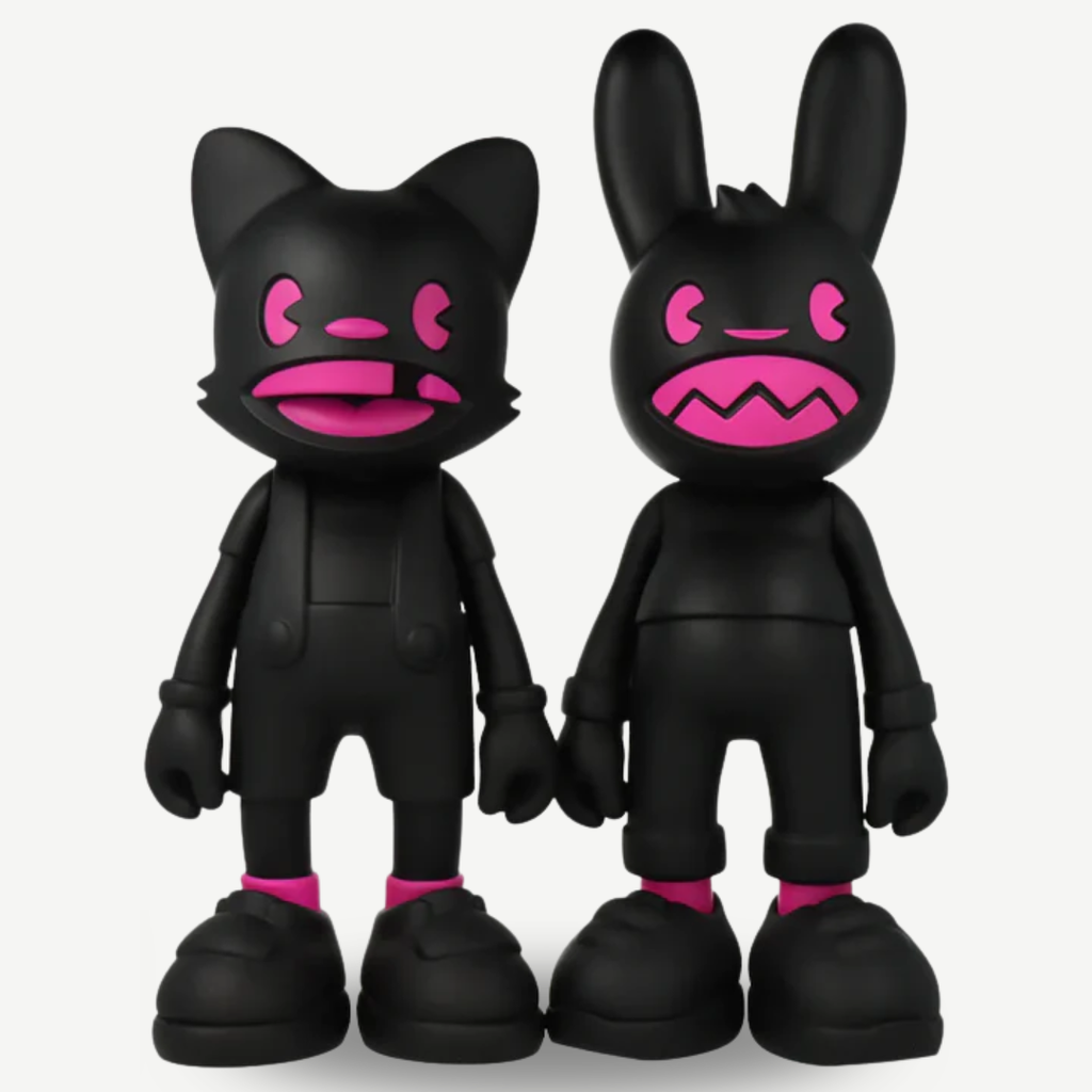 Designed by  Superplastic’s synthetic celebrities & toy designers, Janky & Guggimon, the fourth edition of the exclusive signature series draws inspiration from the demonic helpers of the Superplastic universe. Lil’ Helpers Pretty n’ Kink are finished in soft matte black vinyl accented with pops of electric pink, featuring articulating head and arms. Available as a set or individual.