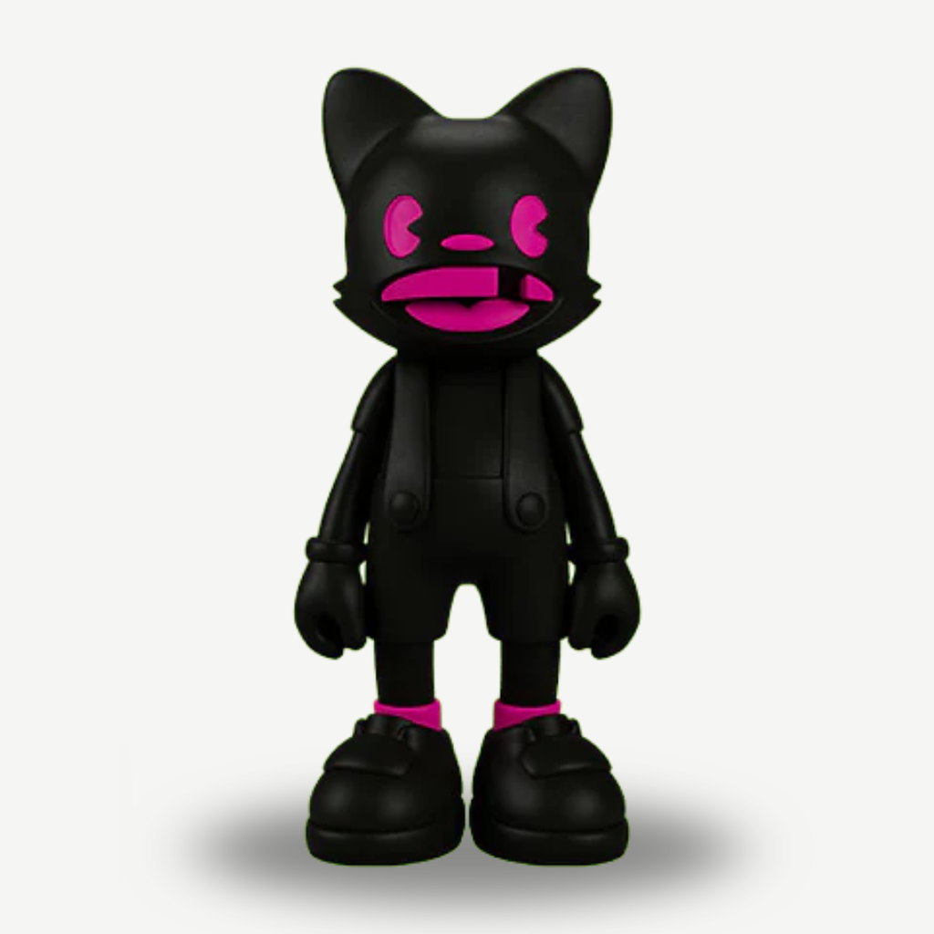 Designed by  Superplastic’s synthetic celebrities & toy designers, Janky & Guggimon, the fourth edition of the exclusive signature series draws inspiration from the demonic helpers of the Superplastic universe. Lil’ Helpers Pretty n’ Kink are finished in soft matte black vinyl accented with pops of electric pink, featuring articulating head and arms. Available as a set or individual.
